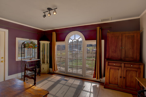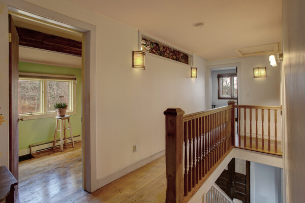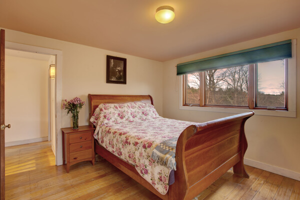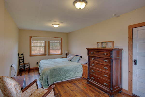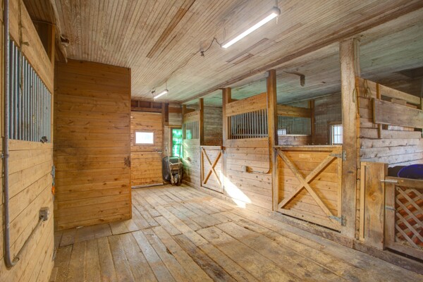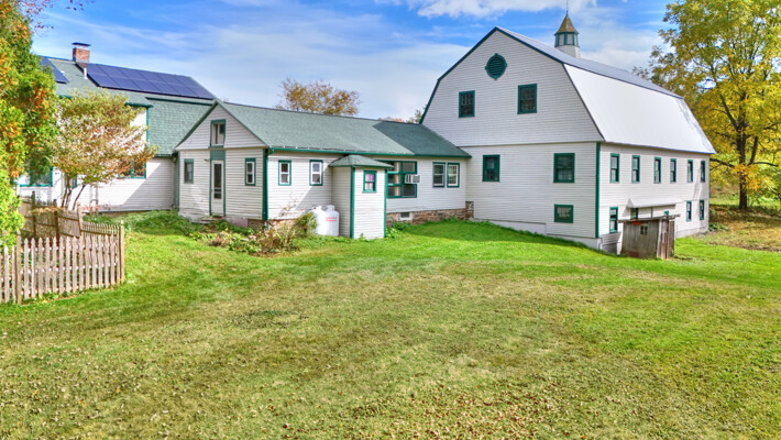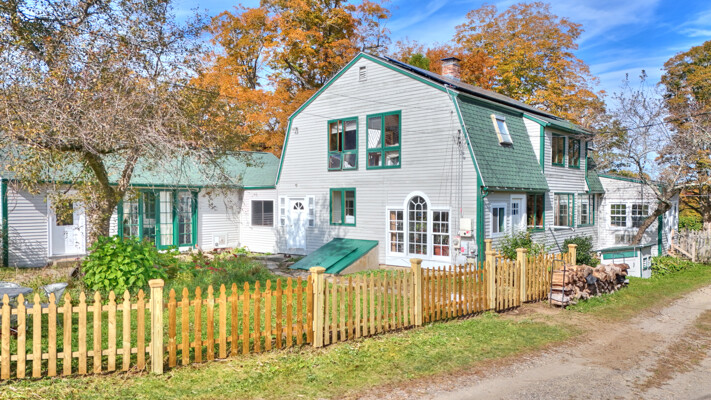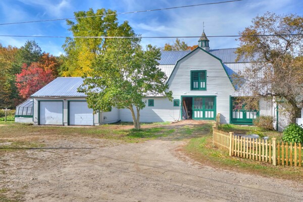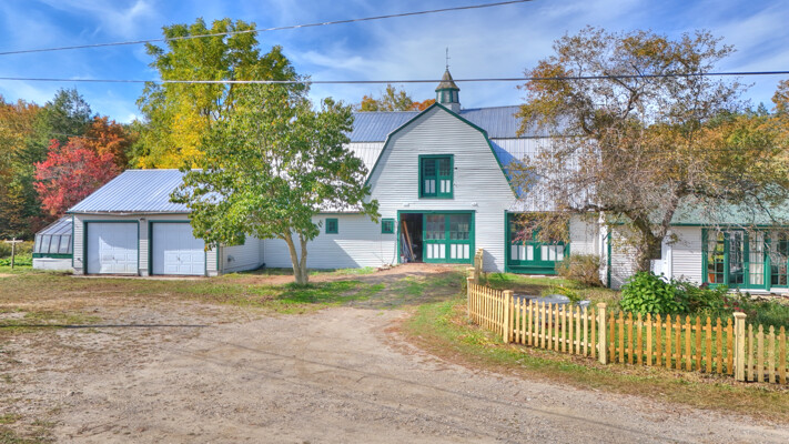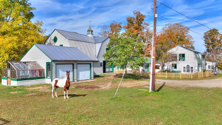Attached is a charming one-bedroom apartment which has rented for $1000/month, with separate propane heat. The 7-stall, three-level barn with capacious hayloft is a beauty, and pasture run-in sheds offer additional animal space. Tucked away by one of the scenic ponds stands a rustic cottage with electricity and wood heat, which could be furnished as a studio or retreat. The two-car garage is currently used as a working art studio featuring a small office and a pellet stove for heat. It has a small greenhouse attached to one side. Across the street are nine acres, planted with 1500 blueberry bushes, and available for other crops as well.